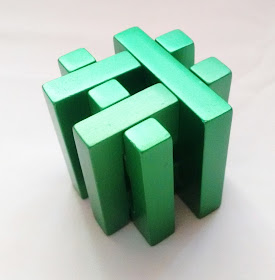 The #1 Puzzle is yet another interesting member of the anodized metal puzzle family by PuzzleMaster. This shiny emerald green puzzle looks like a scary one, but it's actually not that difficult when you attempt to solve it.
